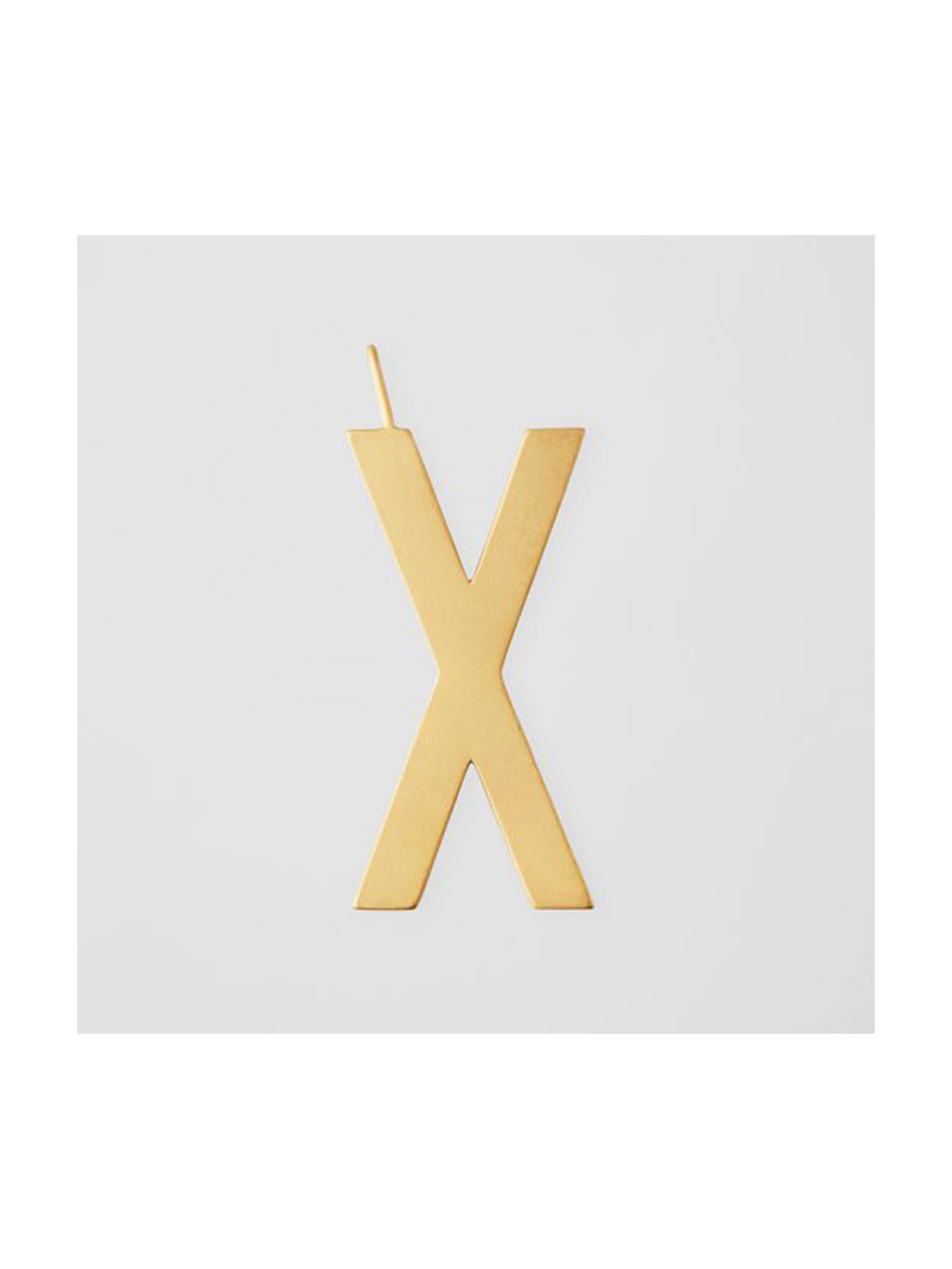 prachtige grote gouden bedel van 30 mm in de vorm van de letter x. de bedel is aan elke gewenste ketting te hangen.