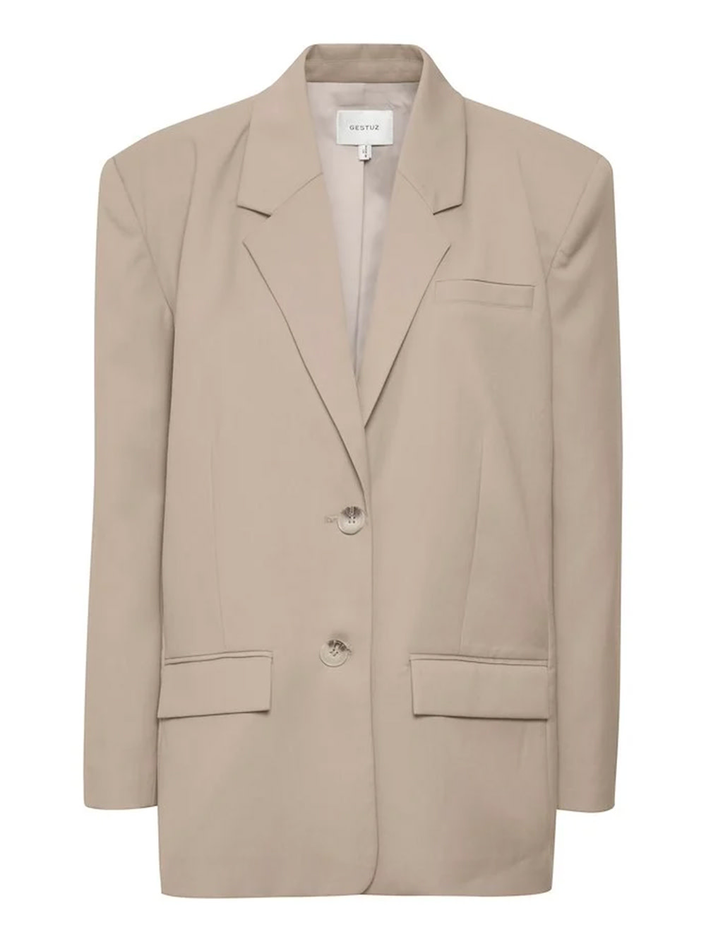 Deze look is perfect voor formele zakelijke bijeenkomsten, presentaties of professionele evenementen waar je een geraffineerde en zelfverzekerde uitstraling wilt hebben. De Gestuz blazer voegt een vleugje elegantie toe aan je outfit, terwijl de neutrale kleur veelzijdig genoeg is om te worden gecombineerd met verschillende stijlen en kleuren.