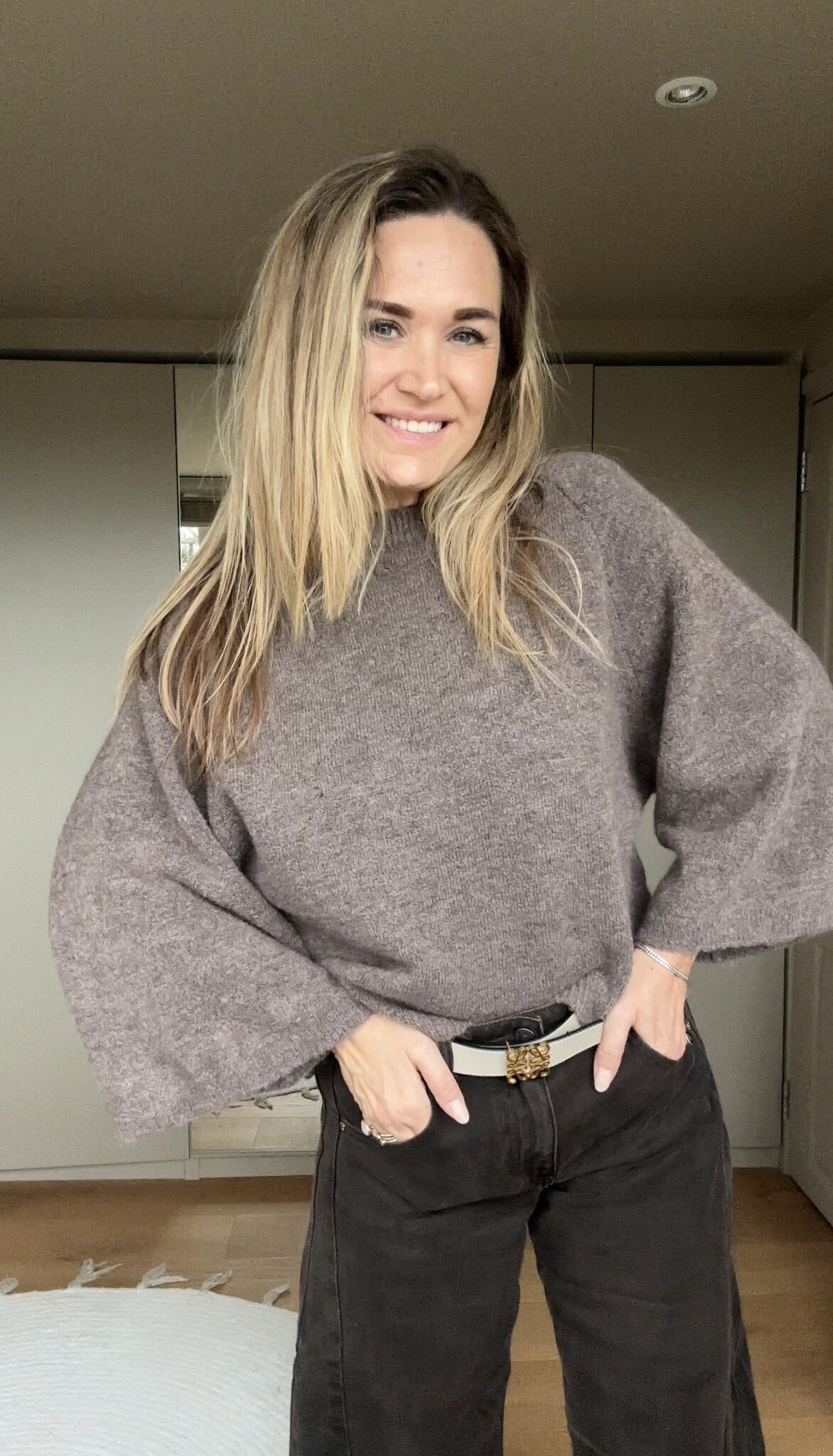 Beige knit in one size (S–L) met comfortabele, iets kortere ruime mouwen. Perfect te combineren met de transparante longsleeve in taupe voor een stijlvolle, laagjes-look. Zachte stof en een moderne pasvorm maken dit een must-have voor het voorjaar.