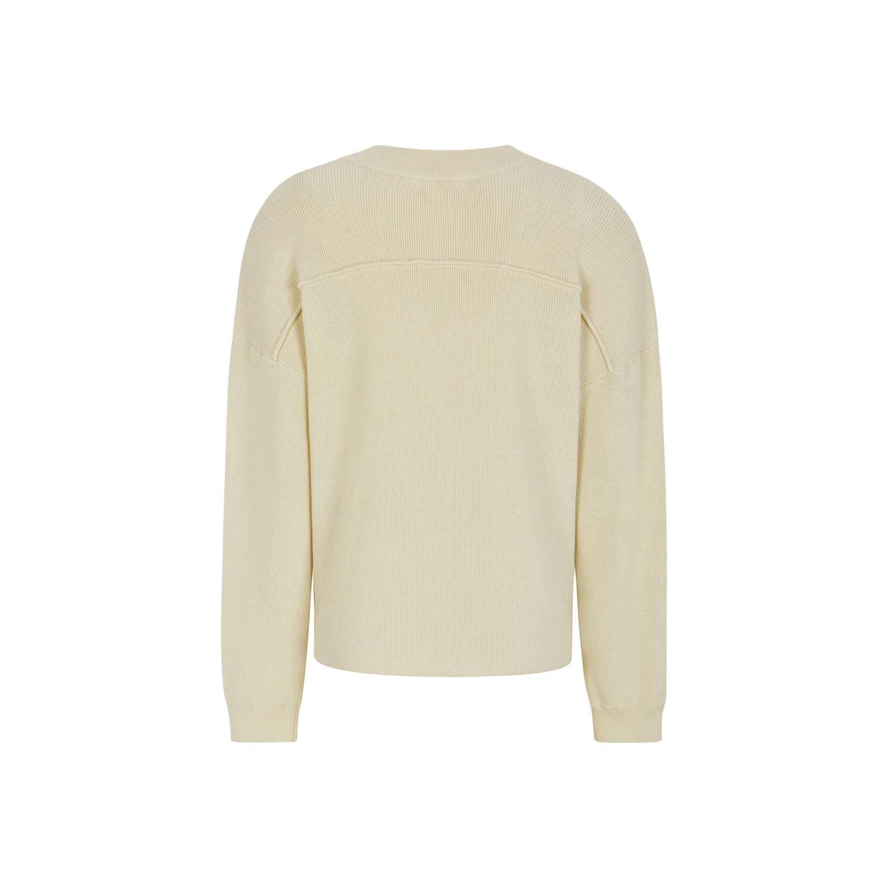 Deze combinatie is perfect voor zowel kantooromgevingen als informele bijeenkomsten, en benadrukt de veelzijdigheid van de Mushi V-neck Knit.